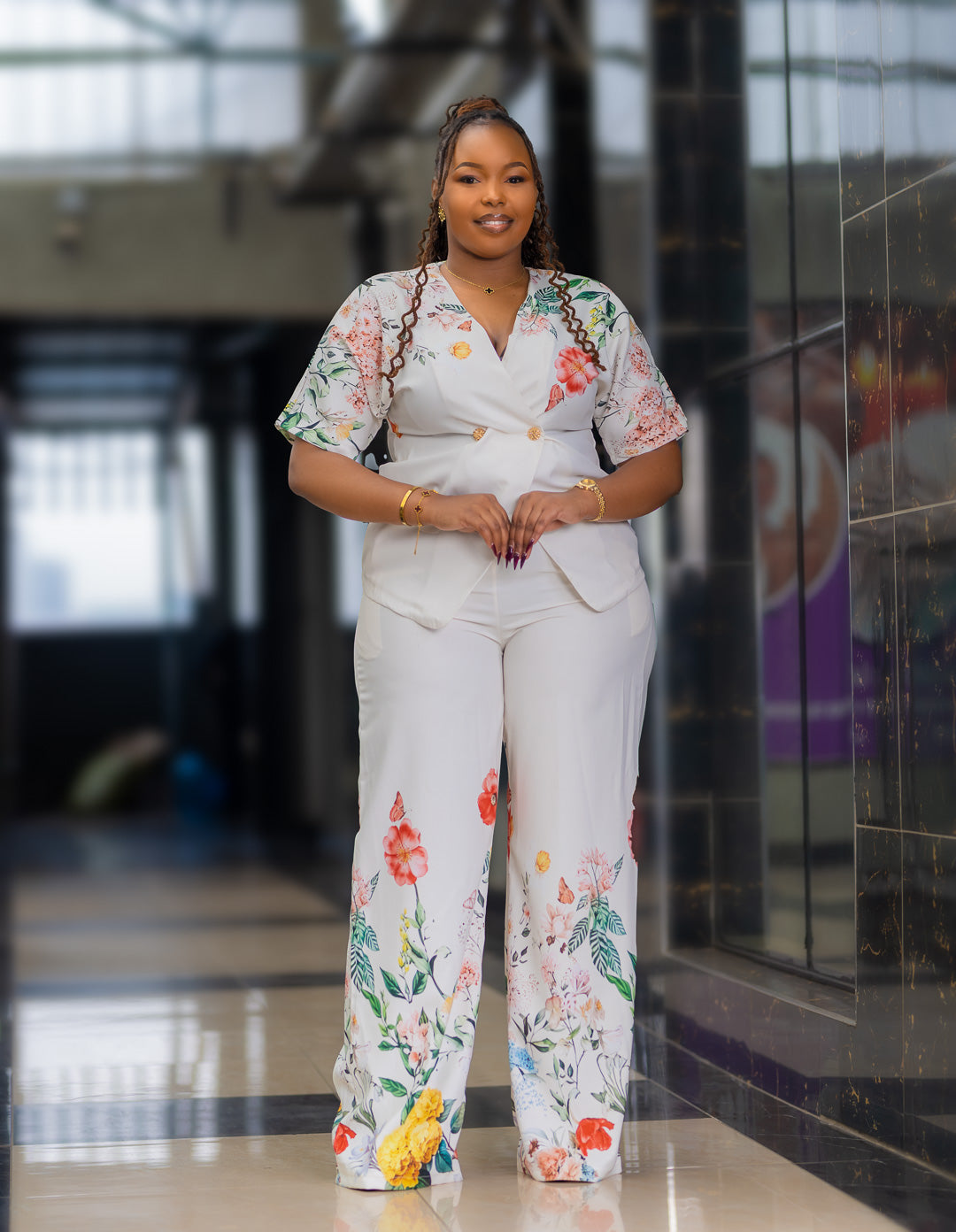 Get ready to turn heads with this FLORAL 2PCS SET! The white wrap blouse features a flattering V-neck and short lanten style sleeves, while the wide leg pants boast a beautiful floral print. Made from comfortable cotton material, this set is perfect for effortlessly transitioning from day to night. Upgrade your wardrobe with this must-have ensemble!