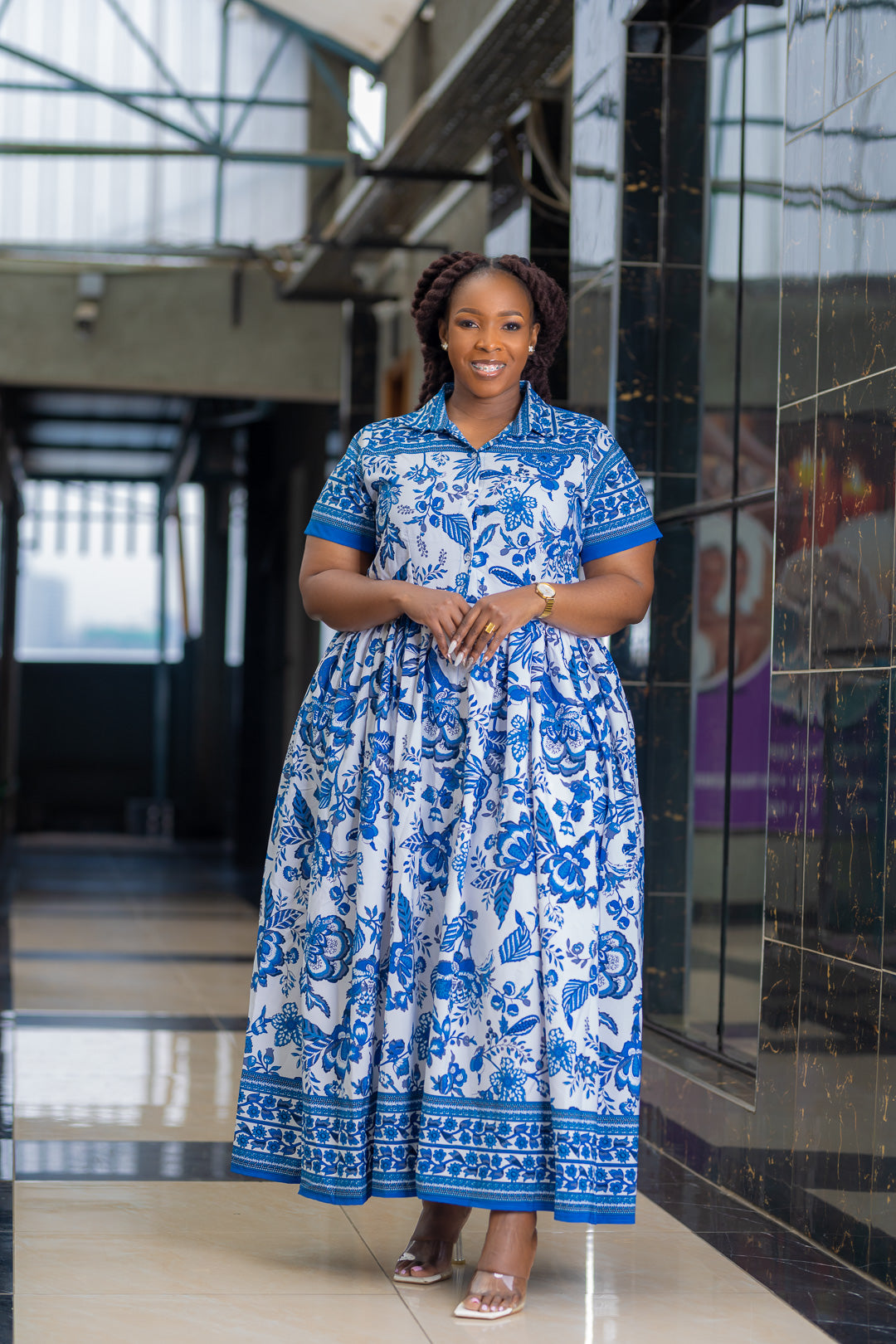 The CHARICE MAXI DRESS combines elegance with everyday wearability. This stunning piece features a plunging collar neckline that flatters your silhouette, paired with delicate floral blue ink detailing on crisp white fabric. Comfortable t-shirt sleeves keep you cool, while the button-down front allows effortless styling from collar to hem. A gathered waist creates a refined shape, and functional pockets add practical charm. Perfect for transitioning from day to evening, this dress delivers sophistication without sacrificing comfort.