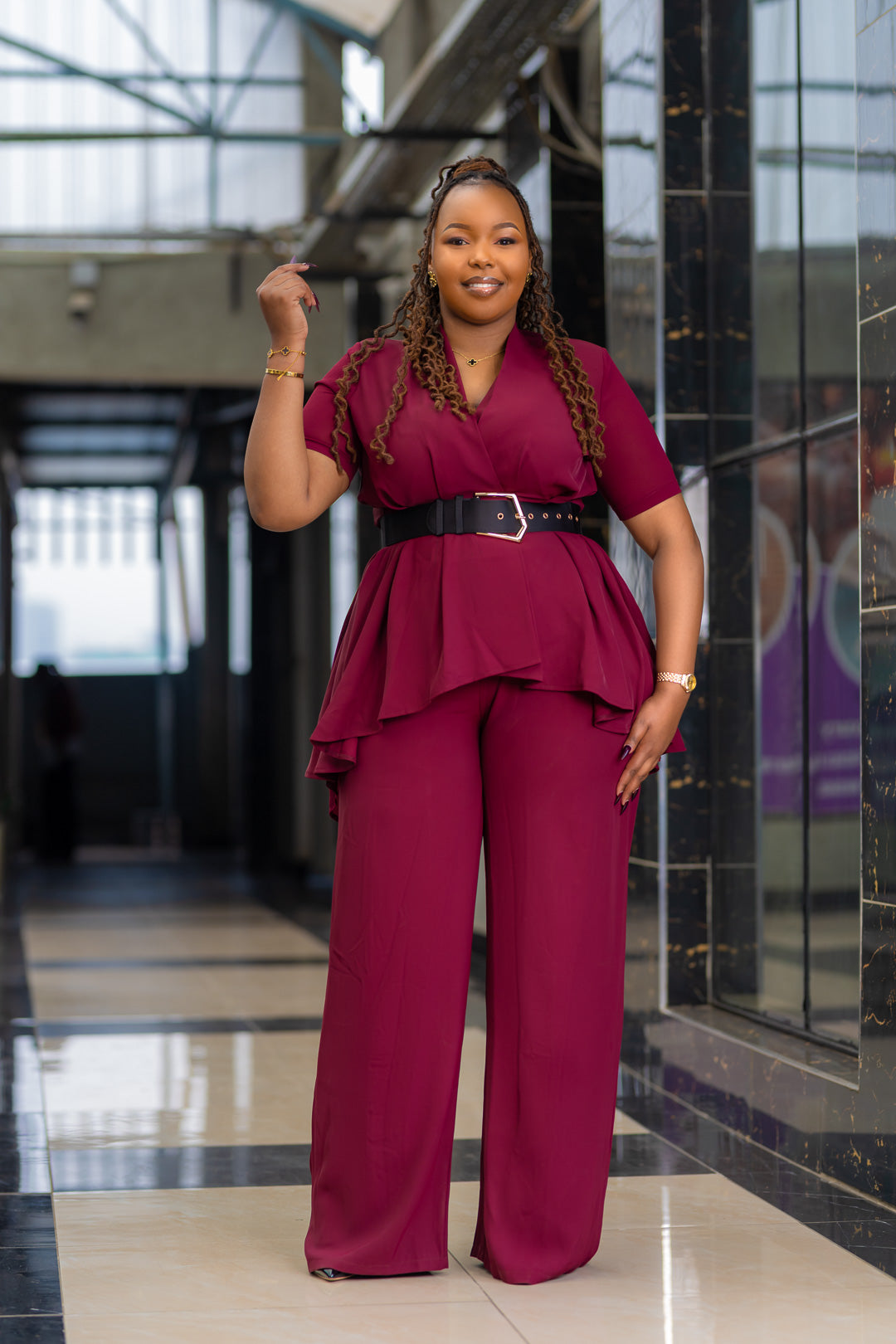 Elevate your style with the Deep Dive 2pc set—a power duo that combines sophistication with versatility. The structured peplum top features sculpted shoulder pads and a removable belt, allowing you to customize your look for any occasion. Paired with the high-waisted wide-leg pants that flatter every figure, complete with functional pockets and a crisp non-stretch fabric that holds its shape beautifully. This is the investment piece your wardrobe has been waiting for—timeless, refined, and endlessly wearable.